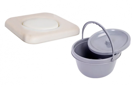 Accesorio con cubeta y asiento de repuesto para silla de ducha.